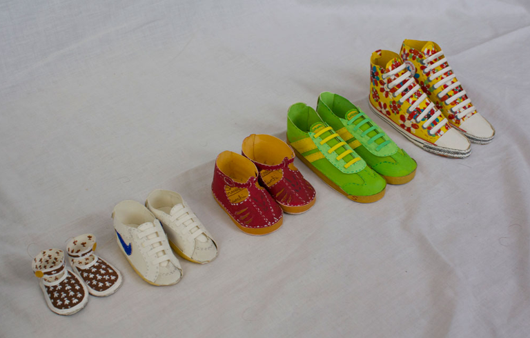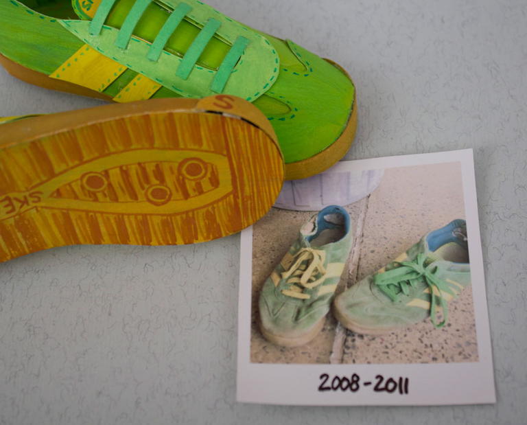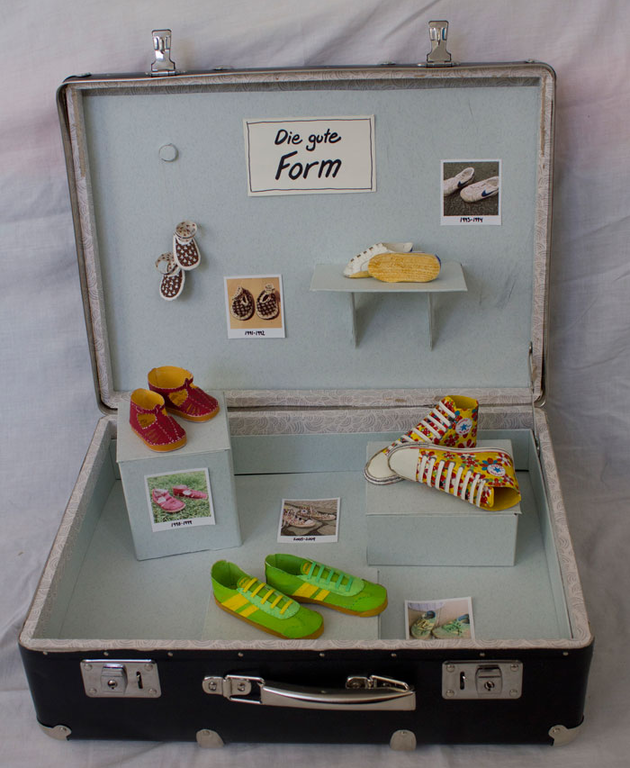 Sie alle wurden geliebt, getragen und ausgelatscht, bis sie den letzten Atem aushauchten. Hier ist ihnen mit 3D-Illustrationen ein Denkmal gesetzt, als Teil einer Miniatur-Ausstellung im Koffer.